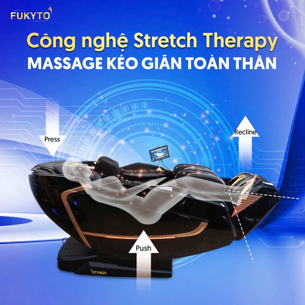 Nhờ vào sự kết hợp giữa túi khí, hệ thống con lăn thông minh và chế độ nghiêng đặc biệt, Stretch Therapy hỗ trợ điều chỉnh tư thế, cải thiện tuần hoàn máu và tăng cường sự linh hoạt của xương khớp. Công nghệ này đặc biệt phù hợp với những người thường xuyên đau lưng, dân văn phòng ngồi lâu hoặc những ai muốn tăng cường sức khỏe cột sống.